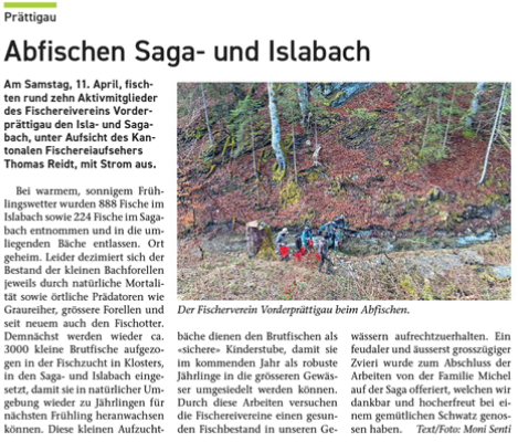 Schon damals wurde festgestellt , dass die Fischerei nicht mehr das ist , was sie einmal war. Darauf beschlossen zwölf einheimische Fischer, den Missstand zu korrigieren und gründeten den » Fischereiverein Vorderprättigau » .
